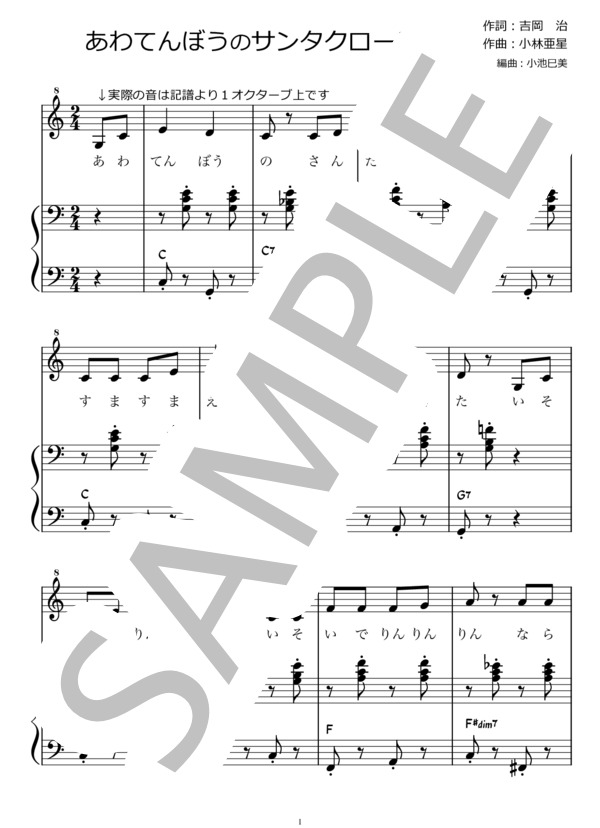 楽譜 あわてんぼうのサンタクロース 民謡 童謡 唱歌 ピアノ