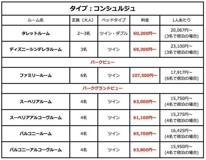 東京ディズニーランドホテル 2016年度の料金表と客室カレンダー 2017