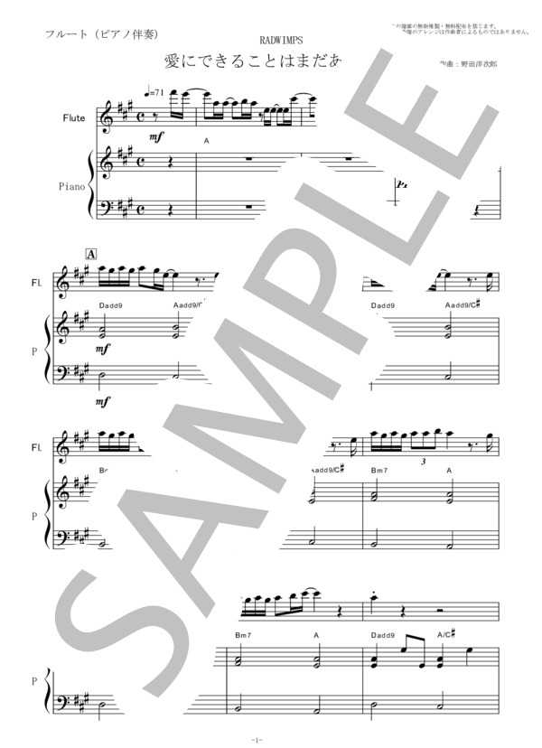 フルート楽譜 愛にできることはまだあるかい Radwimps 天気の子