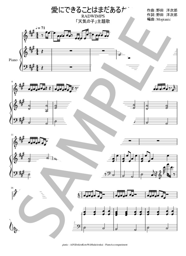 愛にできることはまだあるかい Radwimps ピアノ伴奏 中 上級