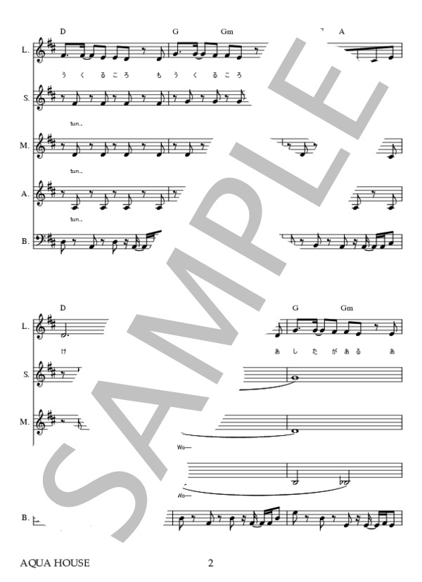明日があるさ 坂本 九 アカペラ 中級 Aqua House Music