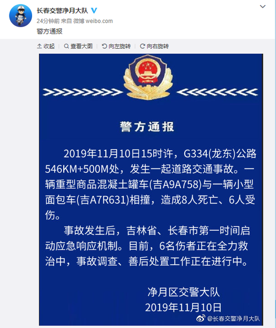 长春发生重大车祸8死6伤 混凝土罐车与面包车相撞 手机新浪网