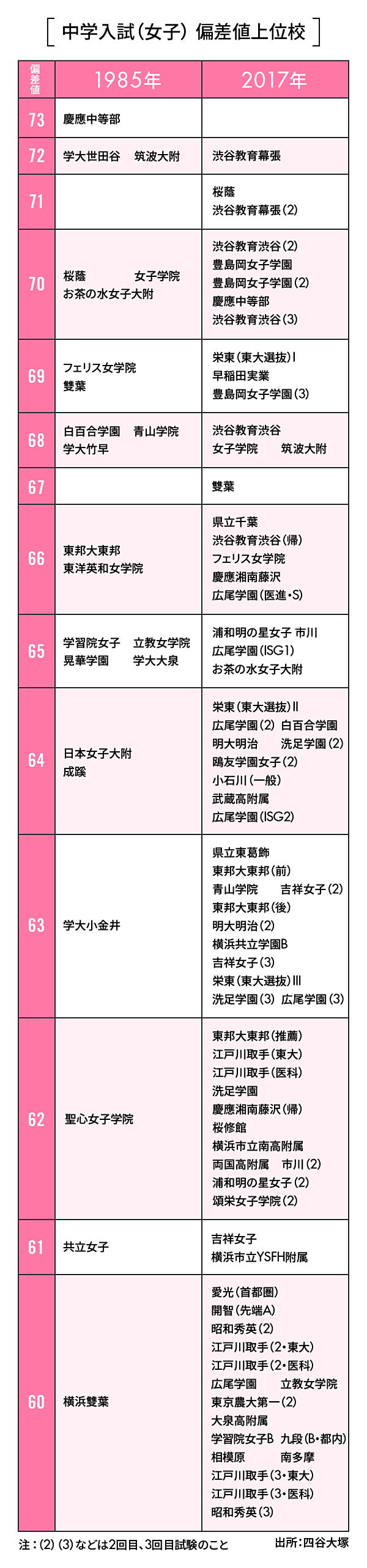 偏差値 併願校 東京都立白鴎高等学校付属中学校 女子 2018年度