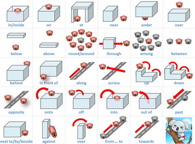 英語における 場所に関する前置詞をまとめた画像が分かりやすいと話題