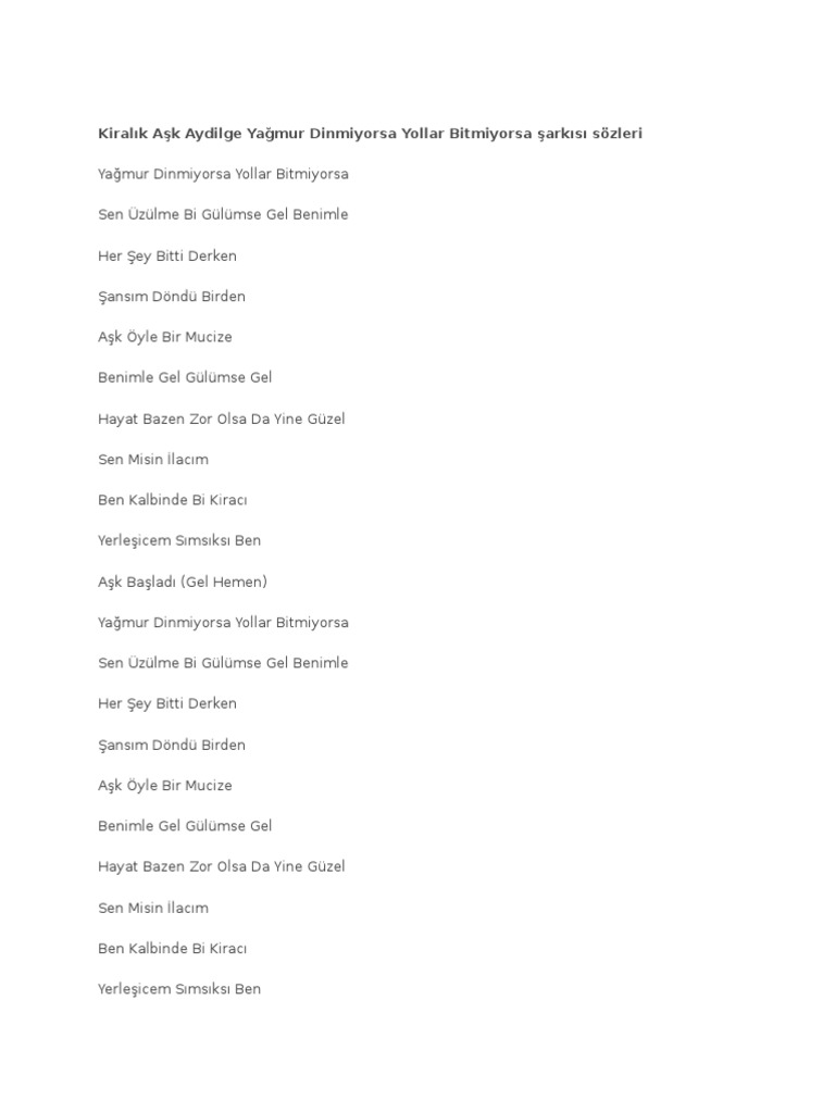 Yağmur dinmiyorsa yollar bitmiyorsa sen üzülme bi gülümse gel benimle her şey bitti derken şansım döndü birden aşk öyle bir mucize. Lyrics to kiralık aşk sen misin ilacım by aydilge. Aydilge aşk lazım lyric video 3 07 ömer u0026 defne kiralık aşk aydilge ask lazim 3 08 kiralık aşk 2. 50 videos play all mix aydilge kiralik aşk sen misin ilacım.