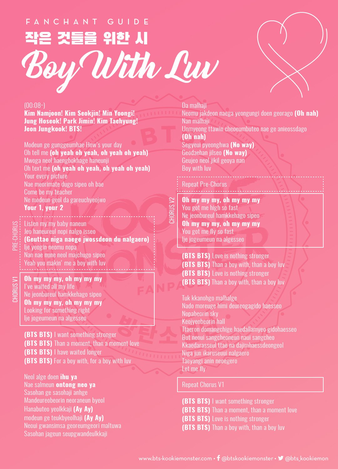 Y And Y Lyric Bts Boy With Luv Lyric And Fanchant Bts