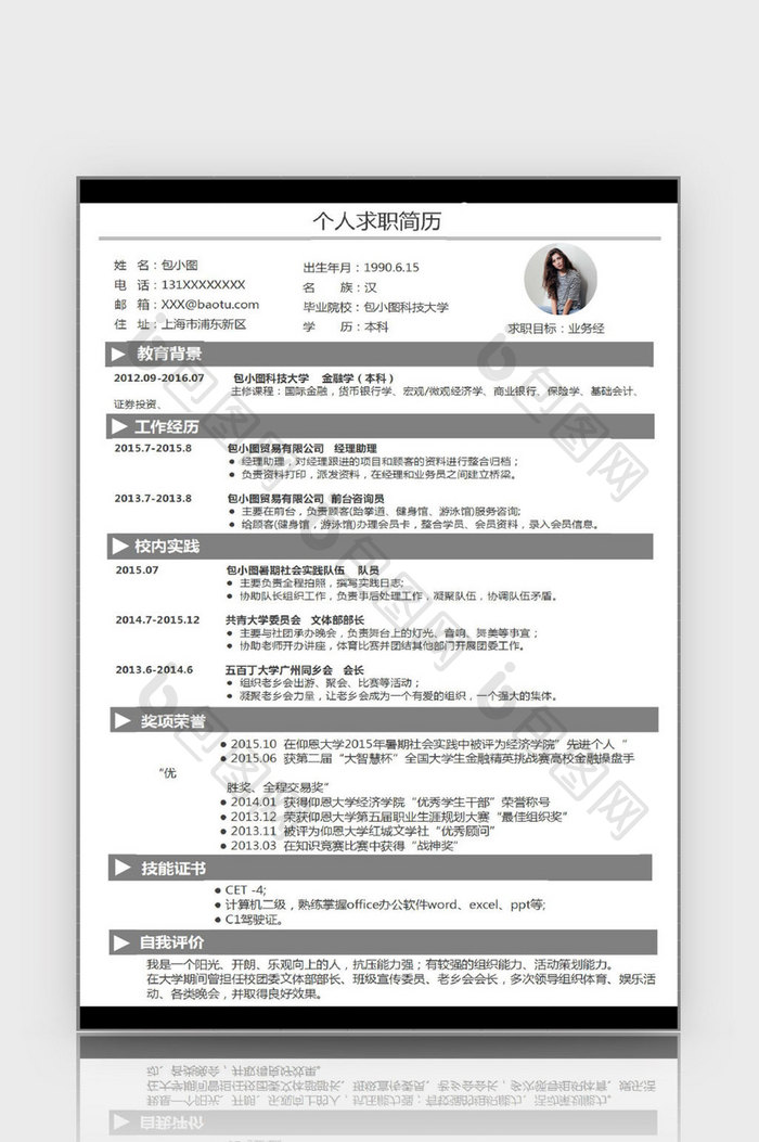 简约业务经理简历表格 Excel模板下载 包图网