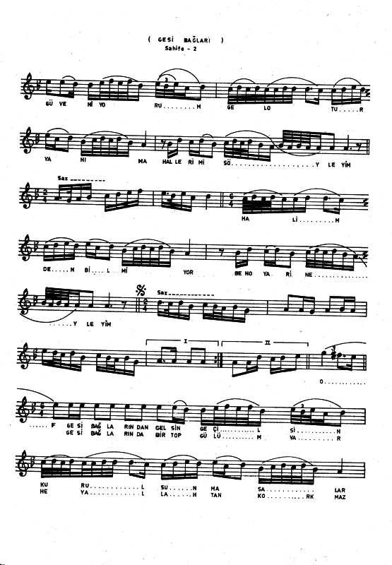Gesi Bağları Nota Ve Sözleri
