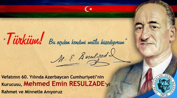 Memmed emin resulzade sozleri. Bir kərə yüksələn bayraq bir daha enməz. Mehmet emin resulzade anatolian high school named after him is a public high school at ankara turkey. Serxan keremoğlu 138 046 views. His expression bir kərə yüksələn bayraq bir daha enməz became the motto of the independence movement in azerbaijan in the 20th century.