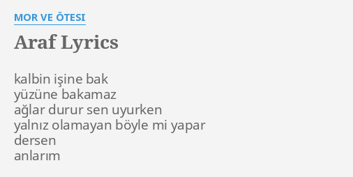 Mor ve otesi araf lyrics. Direniyor faili tutkunun kızmış ve küçülmüş aranıyor sahibi ruhumun tam yerine mi düştüm. Mor ve ötesi rakun müzik film yapim san. Bir derdim var lyrics. Kanun mu bu yalnızlık.