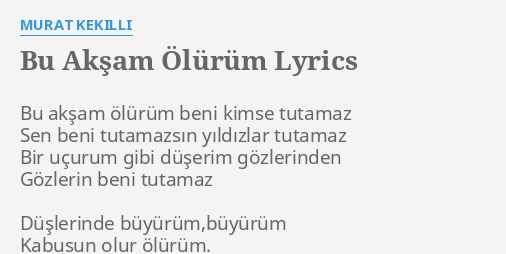 Murat kekilli bu aksam lyrics. Murat kekilli bu akşam ölürüm lyrics. Lyrics for bu akşam ölürüm by murat kekilli. Taner kaya topic 1 347 794 views.